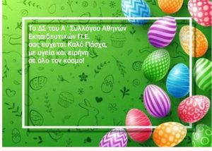 ΑΝΑΚΟΙΝΩΣΕΙΣΕυχές από το Δ.Σ. του Α΄ Συλλόγου Αθηνών 3 Απριλίου 2026 Το Δ.Σ. του Α΄ Συλλόγου Αθηνών σας εύχεται Καλό Πάσχα, με υγεία και ειρήνη σε όλον τον κόσμο!