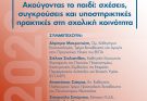 15/2 1η Διαδικτυακή Εκδήλωση ΔΟΕ, 7:00 μ.μ. Ακούγοντας το παιδί: σχέσεις, συγκρούσεις και υποστηρικτικές πρακτικές στη σχολική κοινότητα