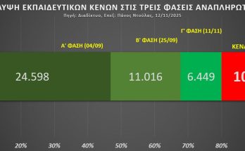 Πλησιάζουμε στα τέλη του πρώτου τριμήνου και τα χιλιάδες κενά διδακτικού προσωπικού, 10.509 πανελλαδικά και 640 στην Α΄ ΔΙΠΕ Αθήνας, αποτελούν ισχυρή απόδειξη της πολιτικής αποδόμησης της δημόσιας εκπαίδευσης που …