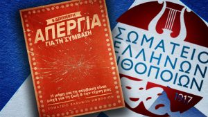 Χαιρετίζουμε τον αγώνα που δίνουν οι ηθοποιοί που εργάζονται στα θέατρα, τη δυναμική και αταλάντευτη στάση του Σωματείου Ελλήνων Ηθοποιών. Εκφράζουμε την αλληλεγγύη μας στους εργαζόμενους και τους θιάσους τους, που την Παρασκευή 5 Δεκεμβρίου θα απεργήσουν από το «σανίδι» και θα είναι στον δρόμο.